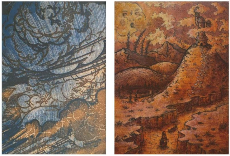 I’m proud to have my print Belfast Storm hanging alongside my student, Jill Van Domelen’s print Whimsy Wind!